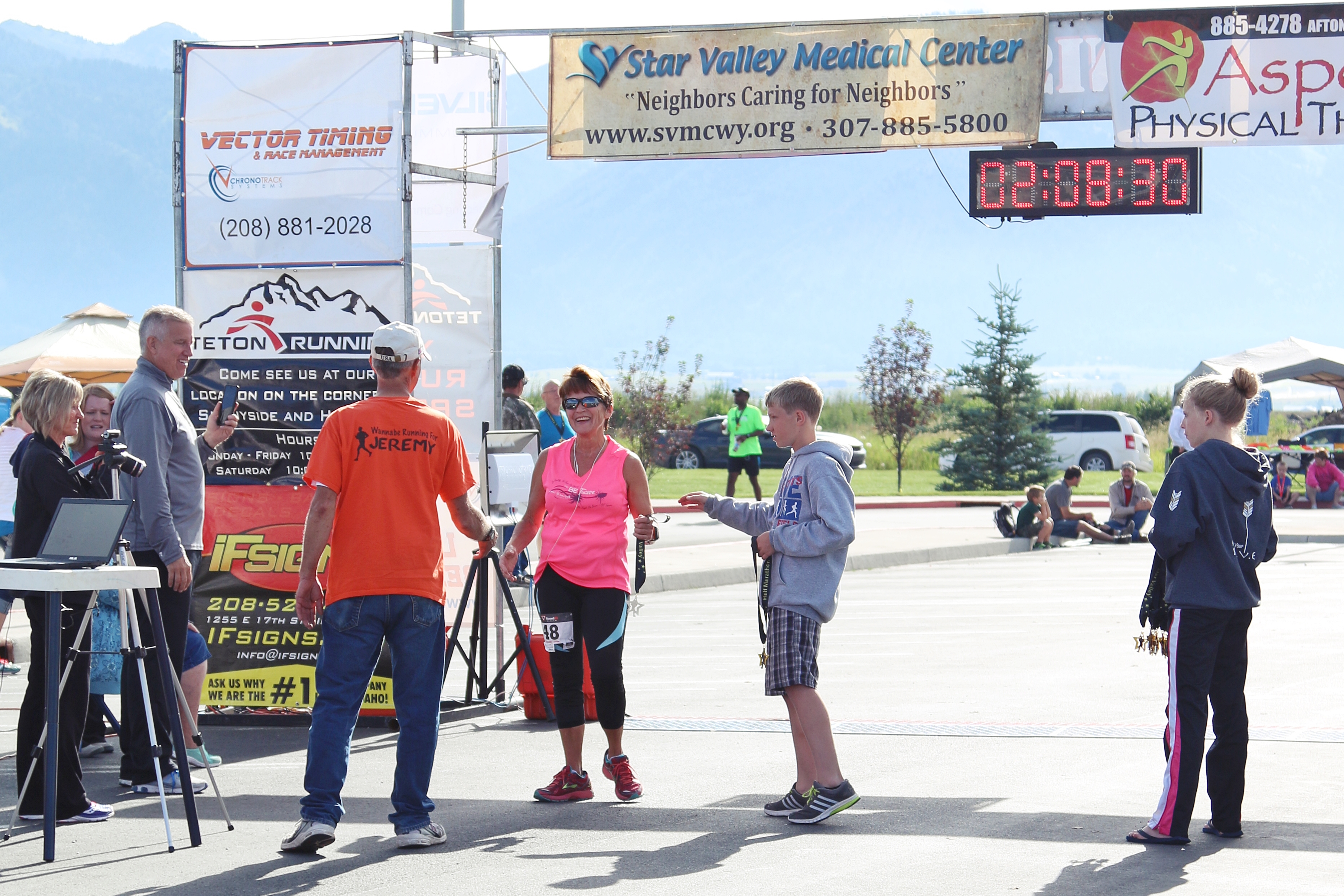 We stopped at Thayne Elementary School that afternoon to pick up our race packets. We’ve done this a thousand times by now, but it still manages to be exciting, and makes us a bit goofy.