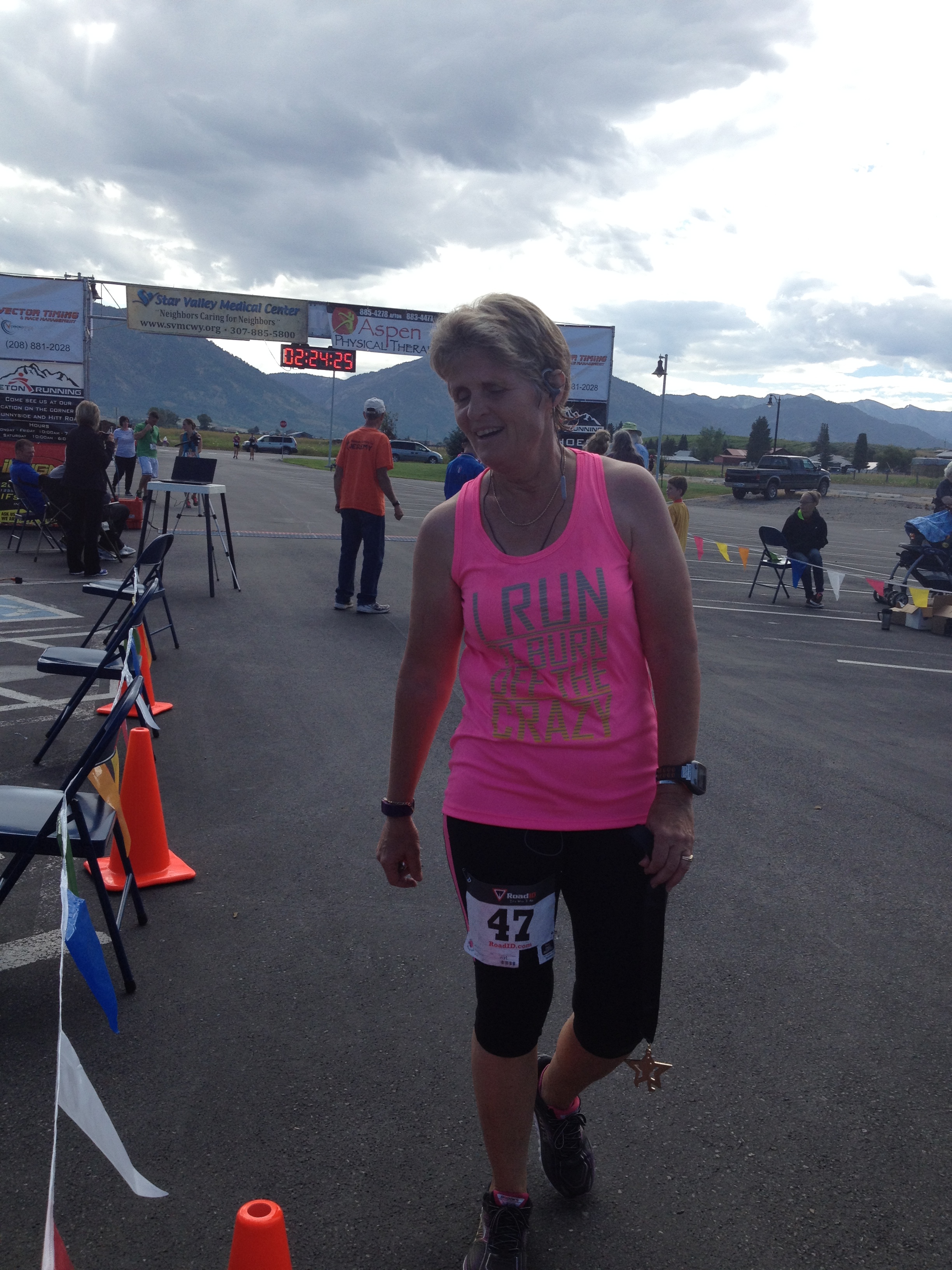 Race morning rolled around early. We boarded shuttle buses at Thayne Elementary at 6:00 am for a 7:00 am race start. The weather put on its finest garb for the event, however, and the morning dawned clear and dry. It was a perfect day for running down a mountain.
