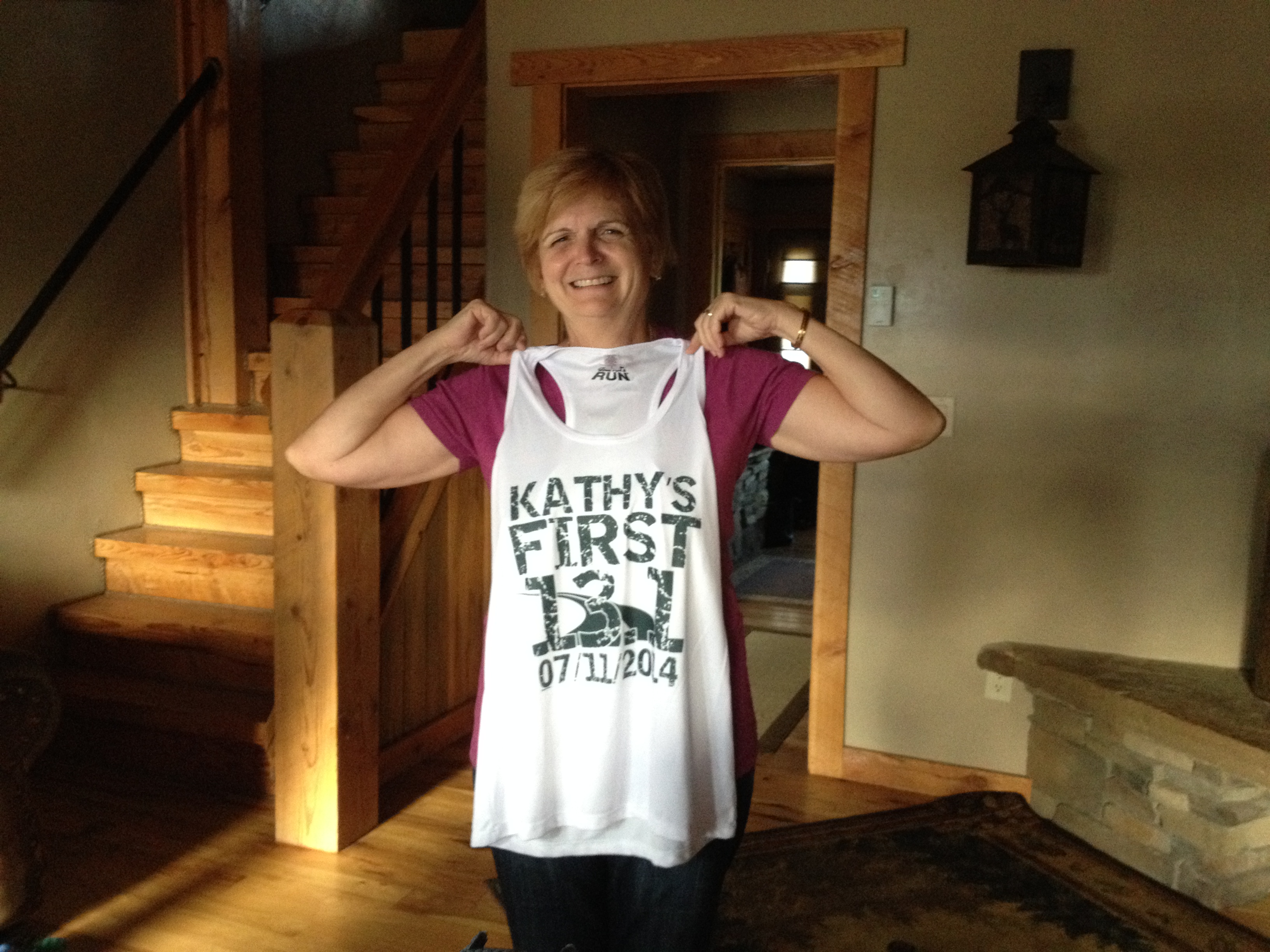 A big first on this trip was that Kathy would be running her first half marathon. After years of dipping her foot in the water with 5K’s, 10K’s, even a 15K, she decided to embrace the challenge of a 13.1 mile half marathon, undaunted by an elevation at race start of 7,000 ft and a steep, downhill course! Melodie presented her with a gift to mark the occasion.