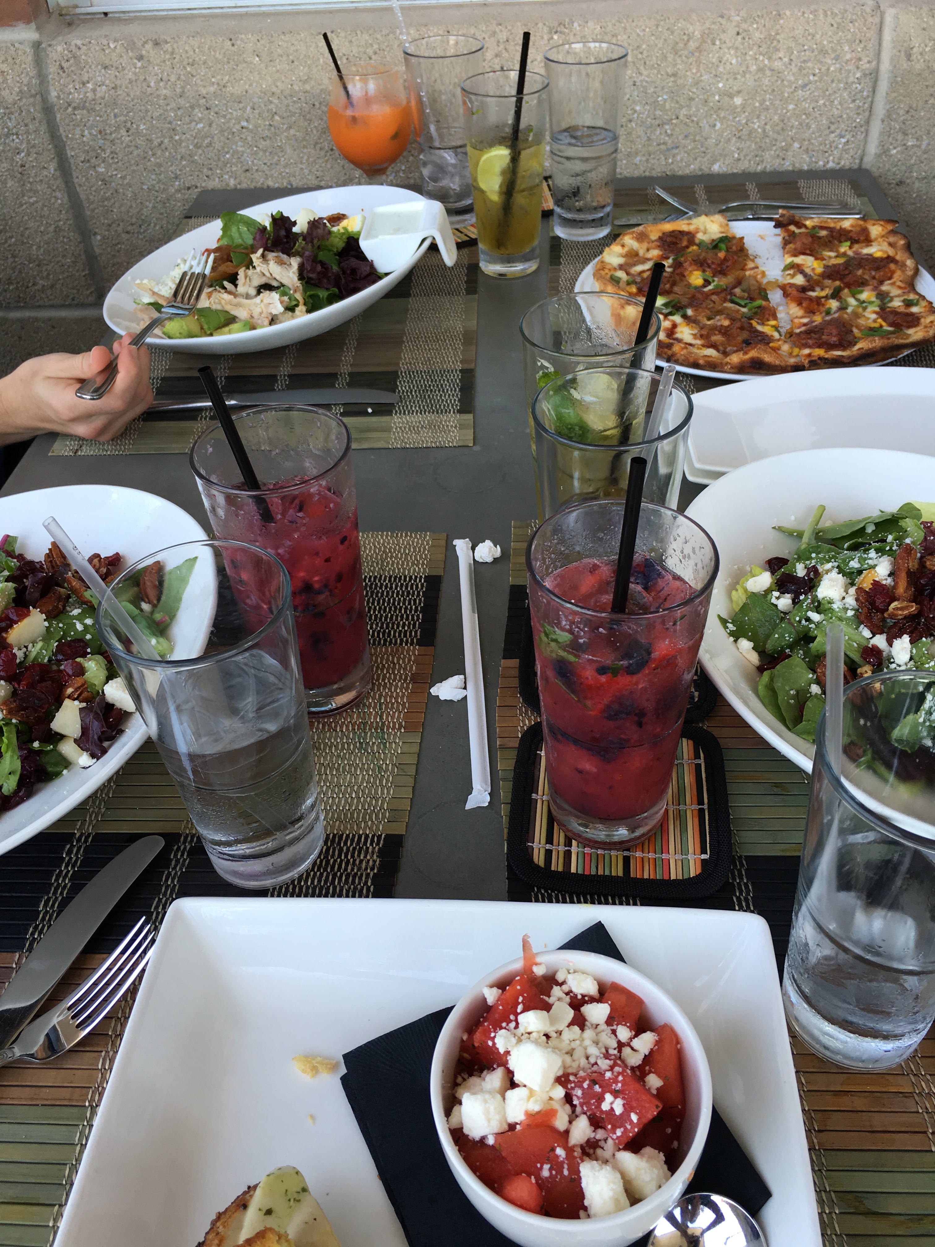 The crew on board for this trip required regular feedings, so after a couple of hours, we started looking for a place to eat. We spotted a local pub and thought that would be a safe place to grab a pizza and salad.
