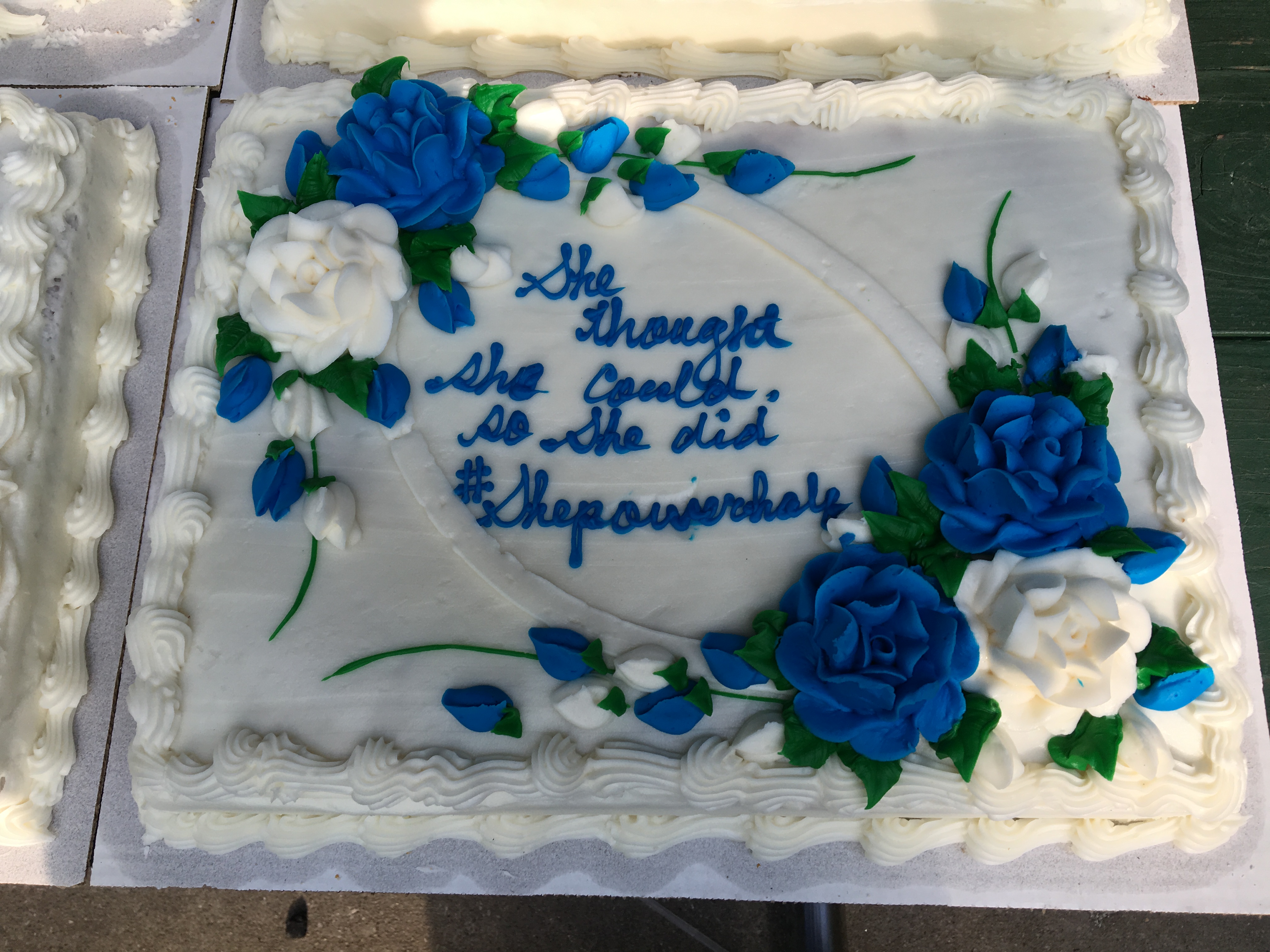 Melodie was the only one captured crossing the finish line. The photo shows a guy on bended knee handing out a red rose. It was a sweet idea, but at this point, all anyone wanted was copious amounts of water, something salty, and a foot massage.