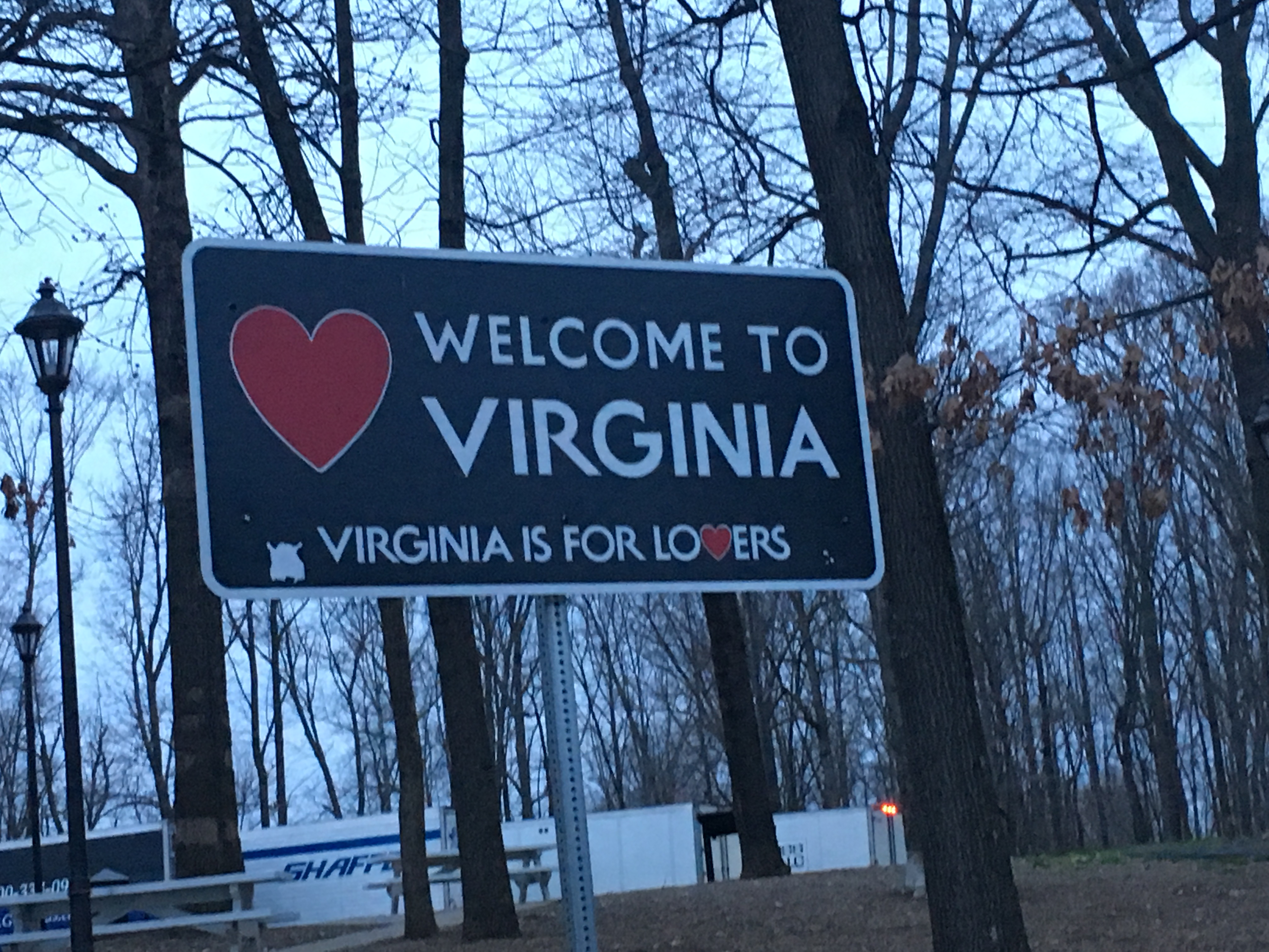 It took us two hours to go the first 60 miles, but the company was great, so we didn’t mind too much. We stopped at a rest area in Fredericksburg, VA and snapped our first pictures in Virginia. We’d never seen a rest stop like this. It resembled a fancy hotel.