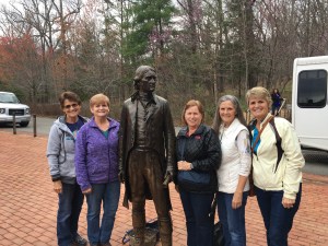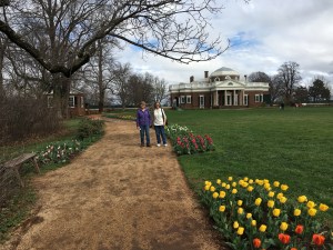 Our goal for the day was to take a few hours and absorb some of the area’s rich history. Charlottesville is home to three of our founding fathers – Thomas Jefferson, James Madison, and James Monroe. Albemarle County is steeped in history, not just in museums, but in the very fabric of the community. Everywhere you go, from the University of Virginia, to the local restaurants, hotels, etc., there is evidence of the roots of our national heritage. We elected to tour Monticello, the famous home/plantation of Thomas Jefferson, the author of the Declaration of Independence and our third president. Monticello is widely known as Jefferson’s autobiographical masterpiece – designed and redesigned and built and rebuilt for more than 40 years. His gardens were a botanical showpiece, a source of food, and an experimental laboratory of ornamental and useful plants from around the world. The original plantation covered over 5,000 acres and housed over 200 people including family and workers, both enslaved and free.