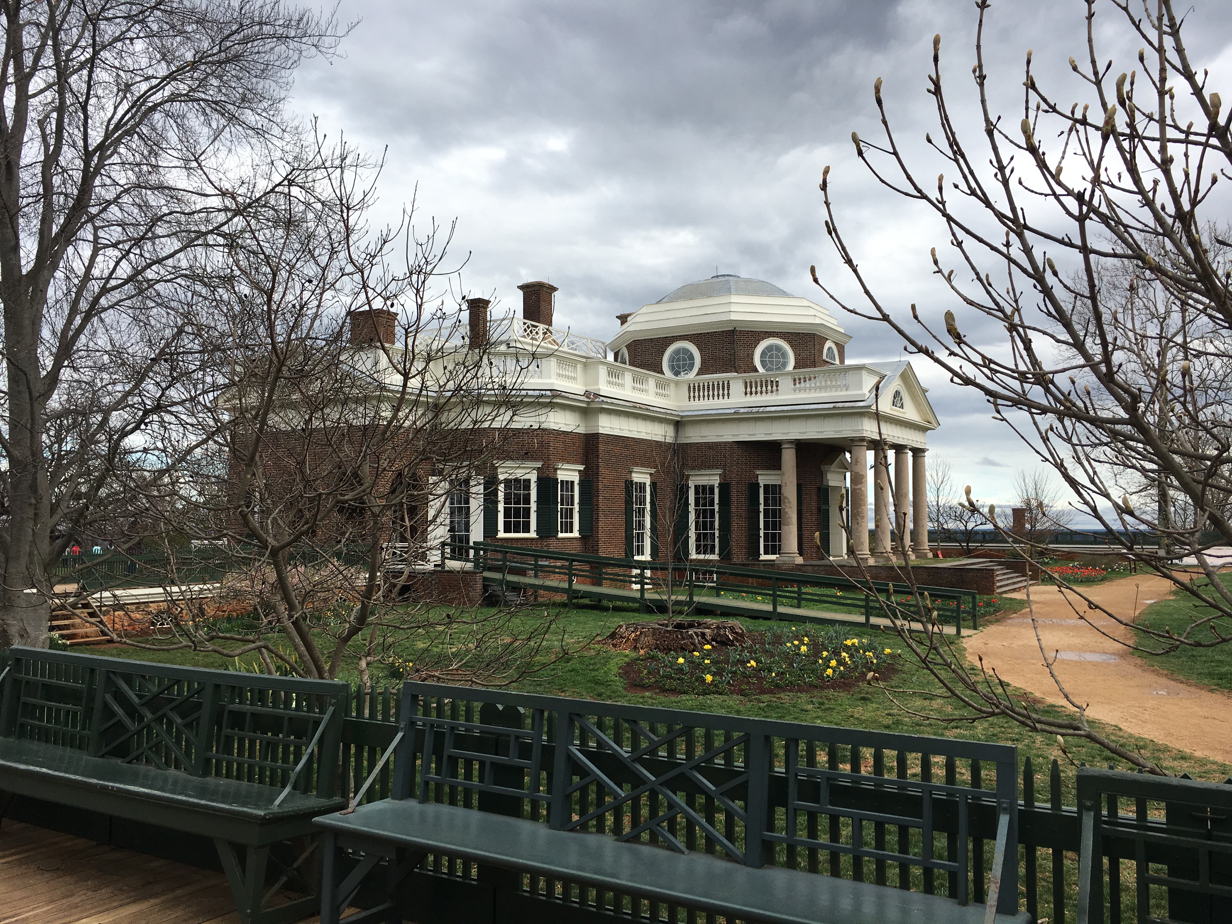 We were fortunate in that the weather turned beautiful as we arrived at the plantation. We spent the first hour exploring the grounds on our own. The grounds have been preserved, as much as possible, to replicate the way Jefferson designed them. Some of the trees are actually originals.