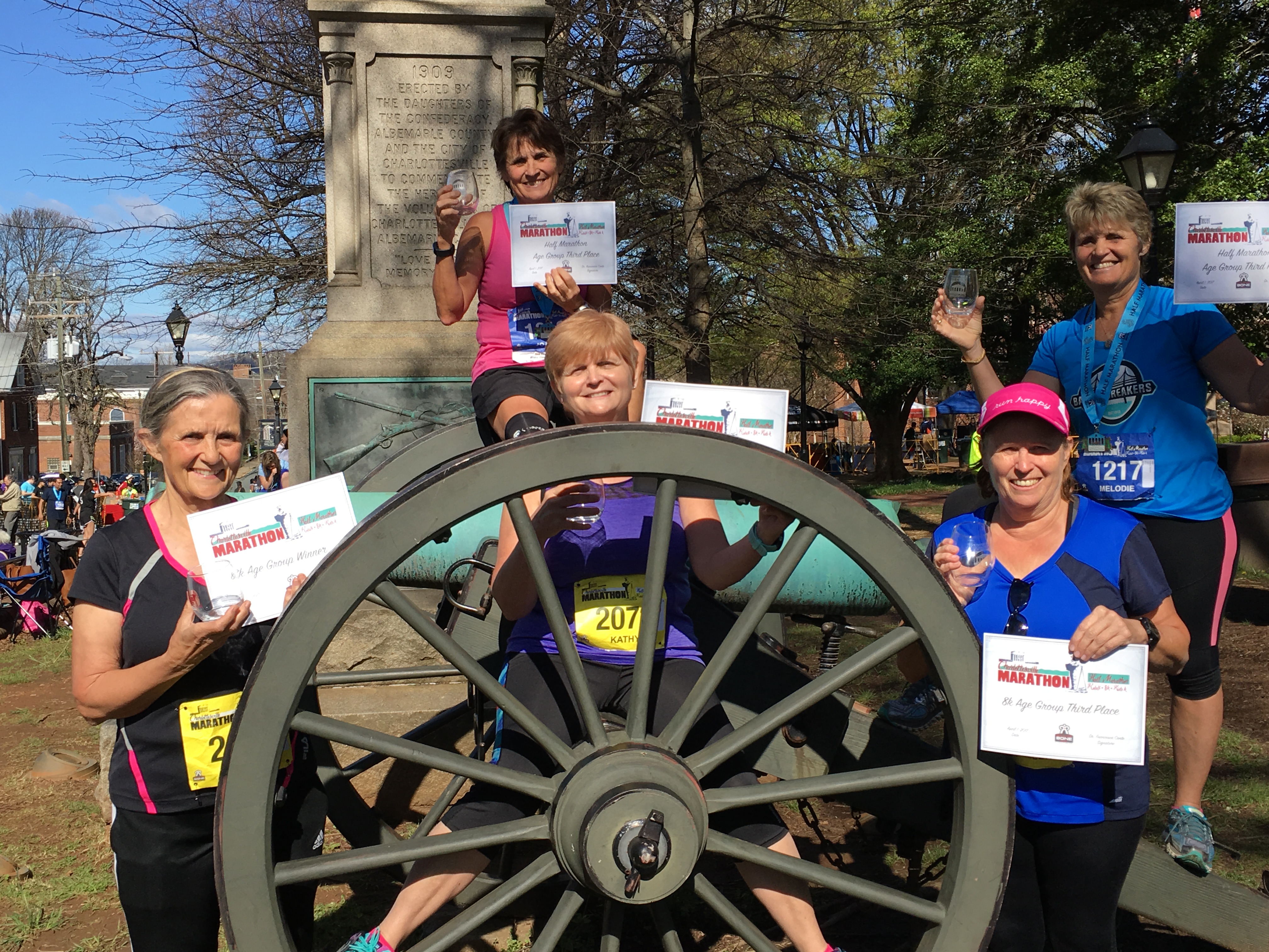 One fun thing about this race was that all 5 of us placed in our age groups and received certificates and a wine glass. It made for a fun photo.