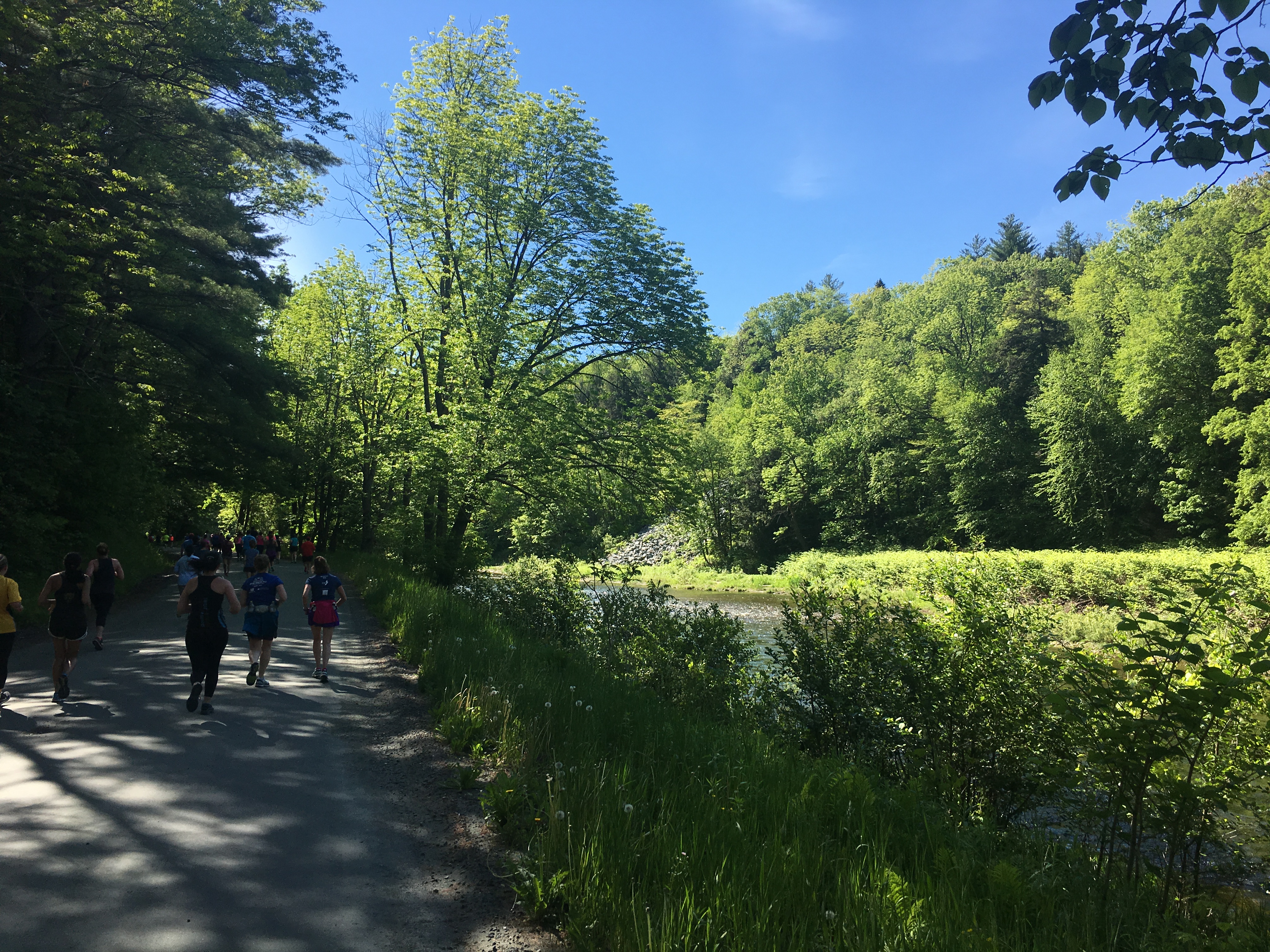 As we came out of the canyon around mile 10, the heat started to become oppressive. Temperatures climbed to the 90’s and we were fully exposed to the sun. Needless to say, we slowed way down and drank copious amounts of water at the stops. We all made it over the finish line, but there were muscle cramps and some serious dehydration involved. (Sorry, I don’t have finish line pictures of the 5Kers. Both of them had a good race.)
